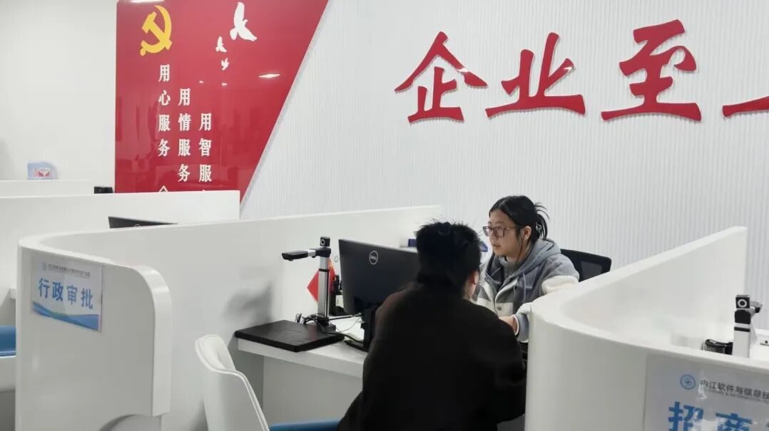 这里可不只有简单的办事窗口,涉企公共法律服务专区能帮你解决合同纠纷,就业指导区能对接招聘需求,医保社保自助服务区随时能查缴费记录,而最让人惊喜的,还要数由内江市东兴区行政审批局工作人员常驻的行政审批窗口——靠“一网通办”把复杂审批变简单,企业办事再也不用跑断腿!