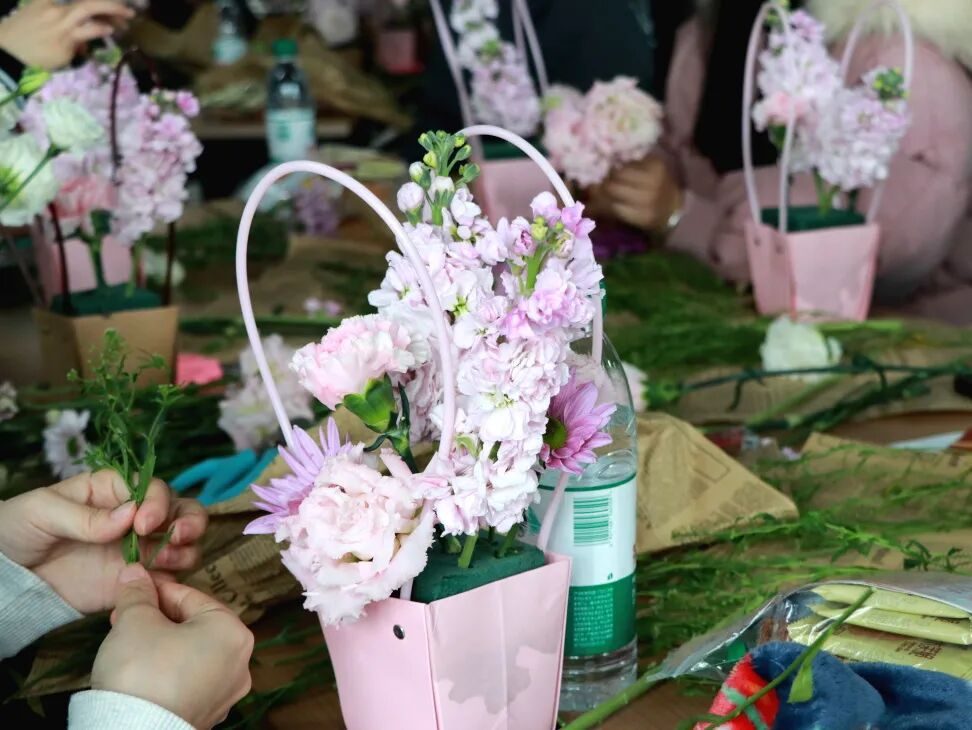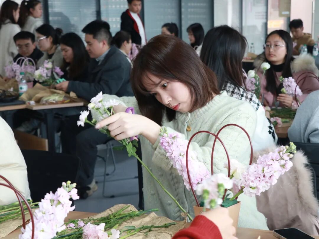 在趣味十足的花艺体验环节,大家在花艺师的指导下亲手创作插花作品,感受生活美学带来的心灵滋养。现场花香四溢,笑语不断,气氛温馨而热烈。
