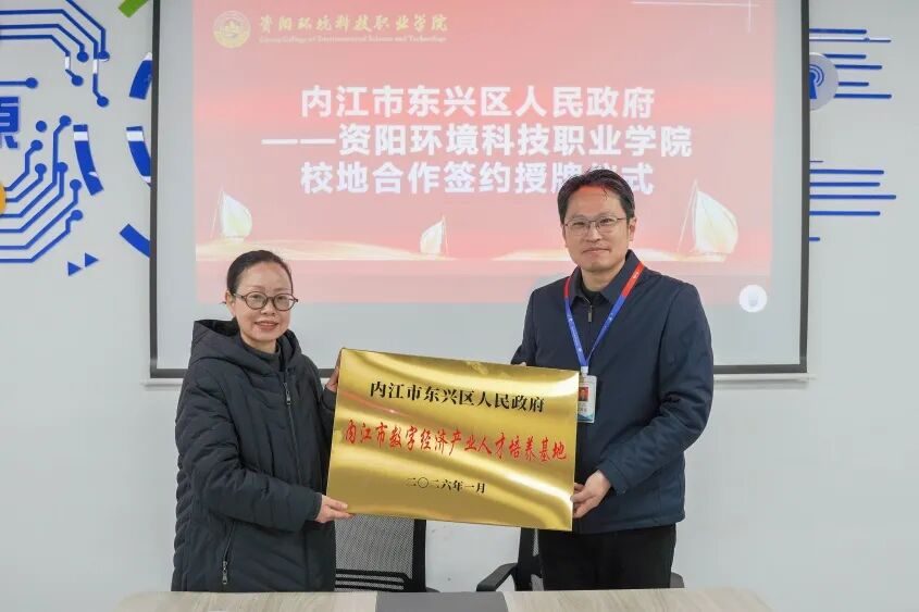 为深入贯彻落实人才强市战略,推动产业与教育深度融合,1月20日,内江市东兴区服务外包发展中心一行赴资阳环境科技职业学院开展合作交流活动,成功举行校地战略合作签约暨授牌仪式,标志着内江软件与信息技术服务外包产业园在深化校地合作、构建人才输送通道方面迈出坚实一步。